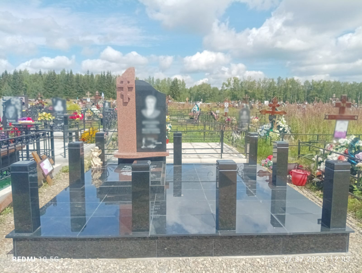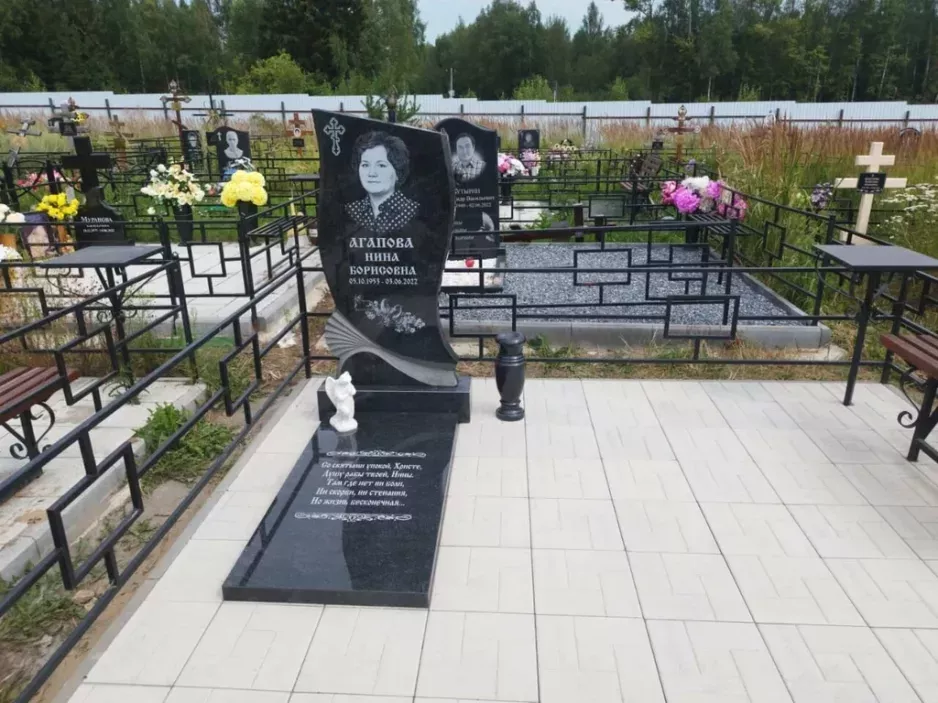 Все элементы композиции смотрятся единообразно. Уход за местом захоронения заметно упрощается. Больше нет грязи и сорной травы. Для родственников, которые не имеют возможности бывать на кладбище регулярно, это наиболее предпочтительный вариант.